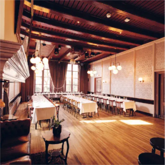 De Grote Zaal wordt dansvloer. Bandje, DJ, Spotify. Laatste ronde: 1 uur.