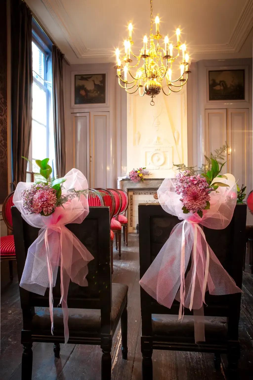 Ceremonie in de Regentessenkamer, lunch of diner met drie gangen, bubbels bij de receptie. Vanaf circa €60 per persoon, inclusief drank. Zaalhuur vanaf €475.